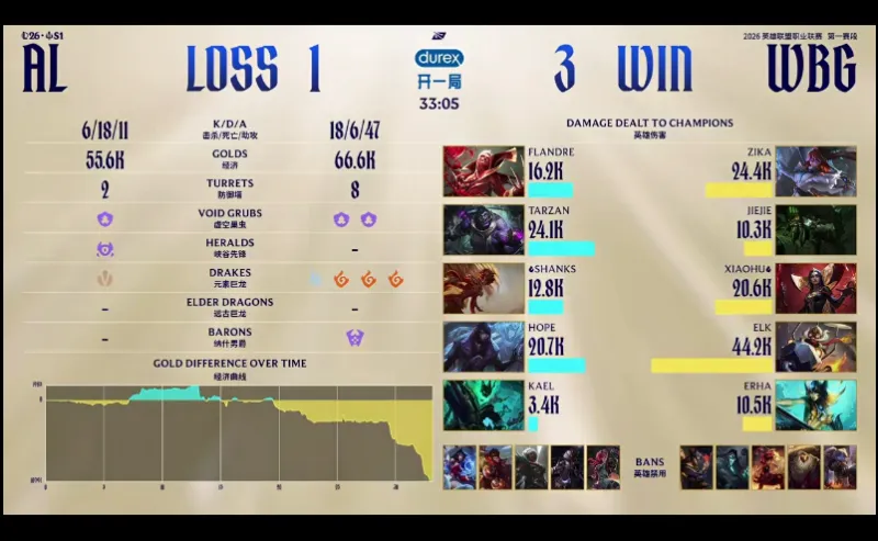 32分钟,AL大势已去,WBG随后顺利一波